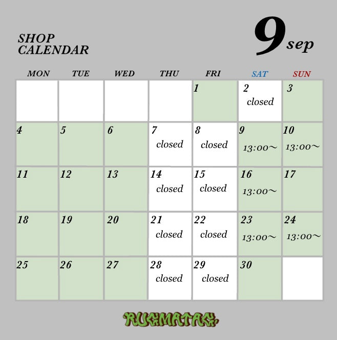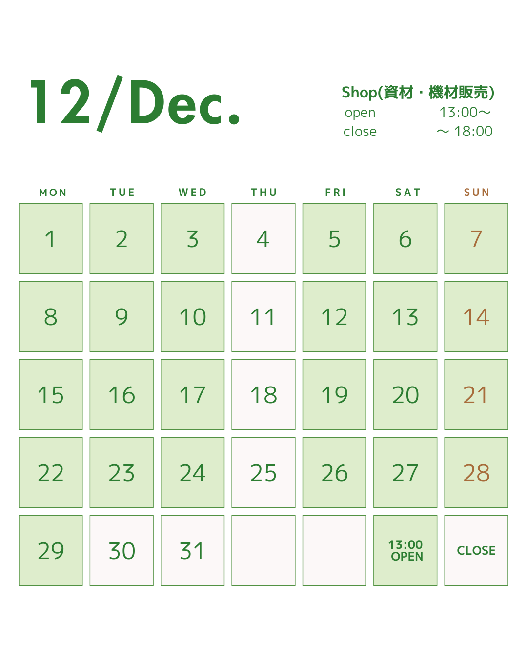 13:00〜18:00 営業日は下記営業カレンダーをご覧ください。 |